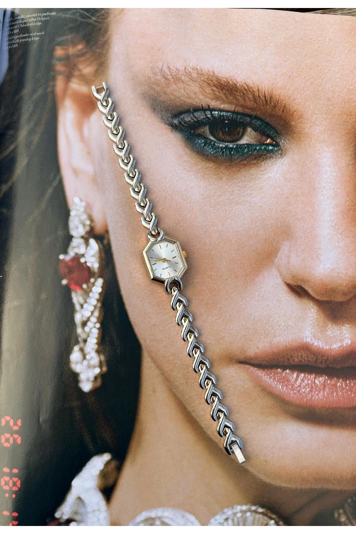 – Retro tasarımıyla dikkat çeken bu kadın kol saati, minimalist metal kordonu ile zamansız bir şıklık sunar.; – Quartz mekanizması sayesinde zamanı hassas ve doğru bir şekilde takip ederken, mineral cam tipi çizilmelere karşı ekstra koruma sağlar.; – Dayanıklı metal bileşenleriyle uzun ömürlü kullanım vaat eder; hem günlük kullanımda hem de özel günlerde yanınızda olur.; – Altının altın rengi detayları ile zarifliği ön plana çıkaran bu saat, her türlü kıyafetle uyumlu kombinasyonlara imkan tanır.; – Su geçirmezlik özelliği olmadığından suya dayanıklı değildir ancak yağmur veya el yıkama gibi günlük durumlarda rahatlıkla kullanılabilir.; – Her yaş grubuna hitap eden tasarım anlayışıyla geniş kullanıcı kitlesine sahiptir; gençten yetişkine herkes tarafından tercih edilebilir.; -Gösterişli cinsiyeti belirtmeden tüm kadınların beğenisini kazanan bu saat modelinin yanında garanti süresinin bulunmamasına rağmen kalitesinden emin olduğumuza inandığımız ürünlerimizi siz değerli müşterilerimize sunmaktayız.