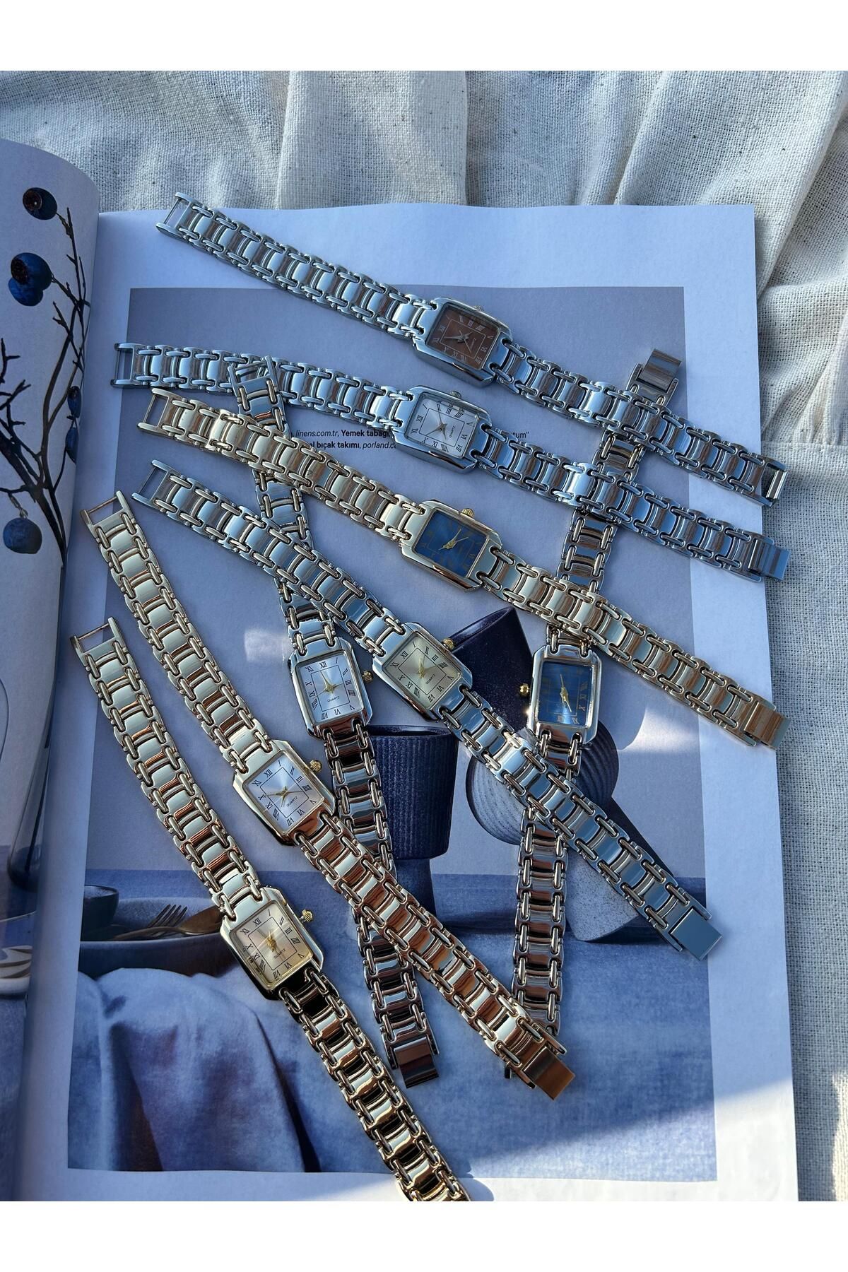 – Retro tasarımıyla dikkat çeken bu saat, minimalist metal kordonu ile her türlü kıyafete kolayca uyum sağlar.; – Quartz mekanizması sayesinde zamanı hassas ve doğru bir şekilde takip eder.; – Dayanıklı metal bileşenleriyle uzun ömürlü kullanım sunar.; – Hem yetişkin hem de genç kadınların tercihi olan bu model, şıklığı ve fonksiyonelliği bir arada barındırır.; – Mineral cam tipi, çizilmelere karşı ekstra koruma sağlayarak saatinizin estetiğini korurken aynı zamanda net okunabilirliği destekler.; – Düz cam şekli ile modern ve zarif bir görünüm sergiler; günlük kullanımda rahatlıkla tercih edilir.; – Su geçirmezlik değeri olmayan (0 ATM) yapısıyla suya dayanıklı değildir ancak yağmur veya el yıkama gibi sıradan durumlarda sorunsuz işlev görür.; – Altın rengin asaletini yansıtan tasarım detaylarıyla göz alıcı bir stil oluşturmanızda yardımcı olur.; -Garanti süresinin bulunmamasına rağmen kalitesine güvenerek satın alınabilecek nadide parçalardandır.