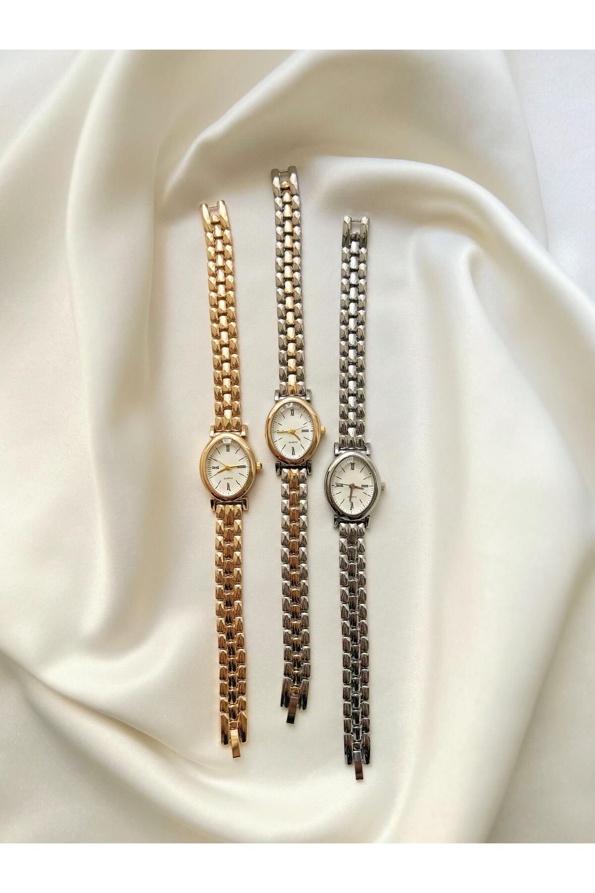 – Quartz mekanizması sayesinde zamanı hassas ve doğru bir şekilde takip eder.; – 20-25 mm çapındaki kasa, zarif ve şık bir görünüm sunar.; – Dayanıklı metal kasa materyali, uzun süreli kullanım için idealdir.; – İki renkli metal kordon tasarımı, modern ve zamansız bir stil oluşturur.; – Yetişkin kadın ve kızlar için uygun tasarımıyla geniş bir kullanıcı kitlesine hitap eder.; – Gümüş ve altın renk seçenekleriyle her türlü kıyafetle kolayca uyum sağlar.; – Mineral cam tipi, çizilmelere karşı ekstra koruma sunarak saatinizin parlaklığını korur.; – Düz cam şekli, saatin sade ve şık duruşunu tamamlar.; – 1 ATM su geçirmezlik özelliği ile günlük su sıçramalarına karşı dayanıklılık sağlar.; – Garantisiz olmasına rağmen, kaliteli malzemeleriyle uzun ömürlü kullanım vaat eder.; – Metal materyal bileşeni sayesinde dayanıklılık ve estetiği bir arada sunar.; – M bedeniyle standart boyutlarda rahat bir kullanım imkanı tanır.