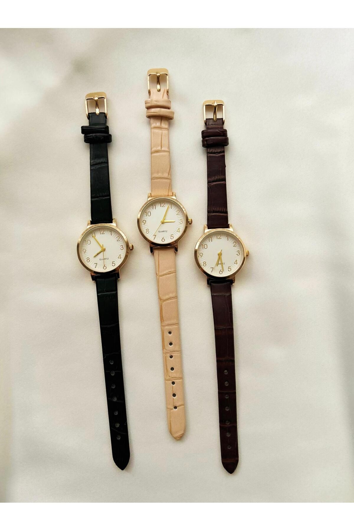Vintage Quartz Minimal Kadın Kol Saati Deri Kordon Bej